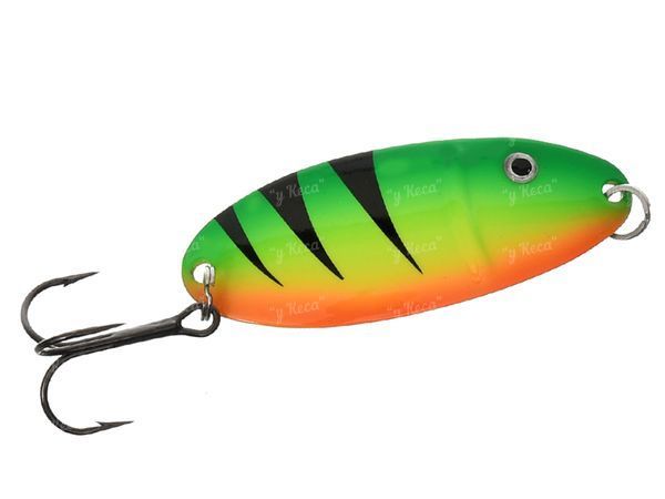 Колеблющаяся блесна с классической широкотелой формой, которая прекрасно подходит для ловли на спокойном течении заливов рек, тихих вод прудов, ставков, карьеров. Тело приманки выполнили из латуни, оснастив кованными кольцами и острыми, надёжными тройниками от компании VMC. Приманка выпускается в различных цветовых исполнениях и четырёх развесовках: 12, 15, 18 и 21 грамм.